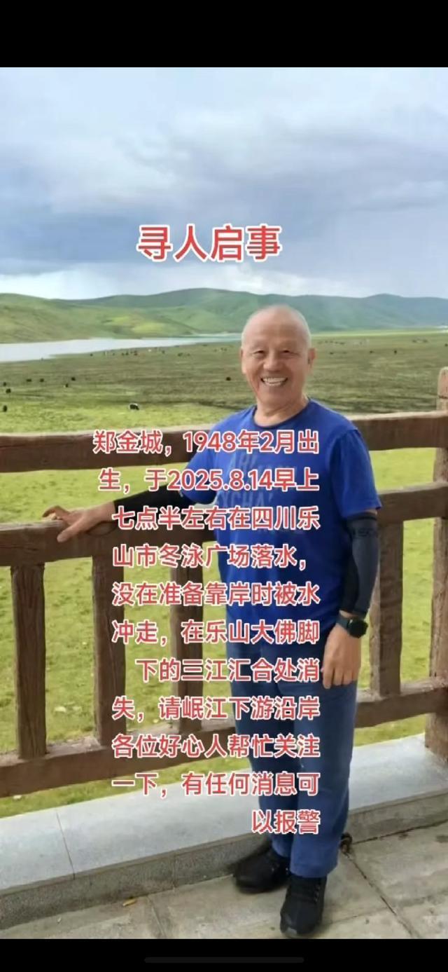 这位77岁的男子与Dadu河的游泳失去了三天以上的接触。家庭成员请求帮助:如果您有新闻,请致电警察。
